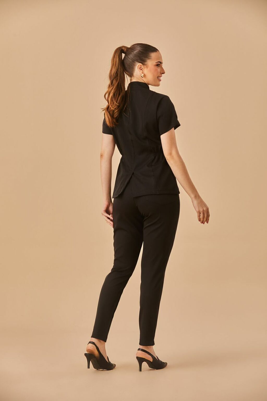 Blusa com gola padre e detalhes com botões, dando charme e elegância. Dois bolsos grandes e mangas tulipas. Calca com elástico na cintura e botões que dá mais conforto para o dia a dia. Dois bolsos grandes frontais. Calça reta.